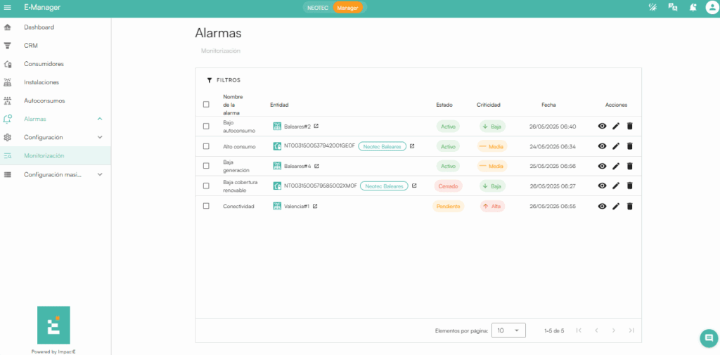 Con esta nueva funcionalidad, E·Manager se consolida como una herramienta estratégica para quienes gestionan autoconsumos colectivos e individuales, comunidades energéticas, o portfolios con múltiples instalaciones. Las ventajas prácticas son claras: