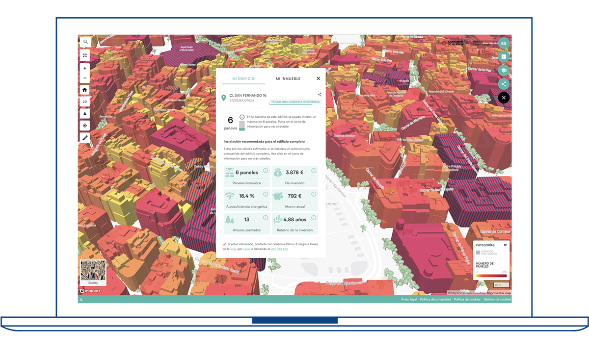 Con un clic conoce el potencial fotovoltaico y la instalación recomendada para tu edificio o inmueble.